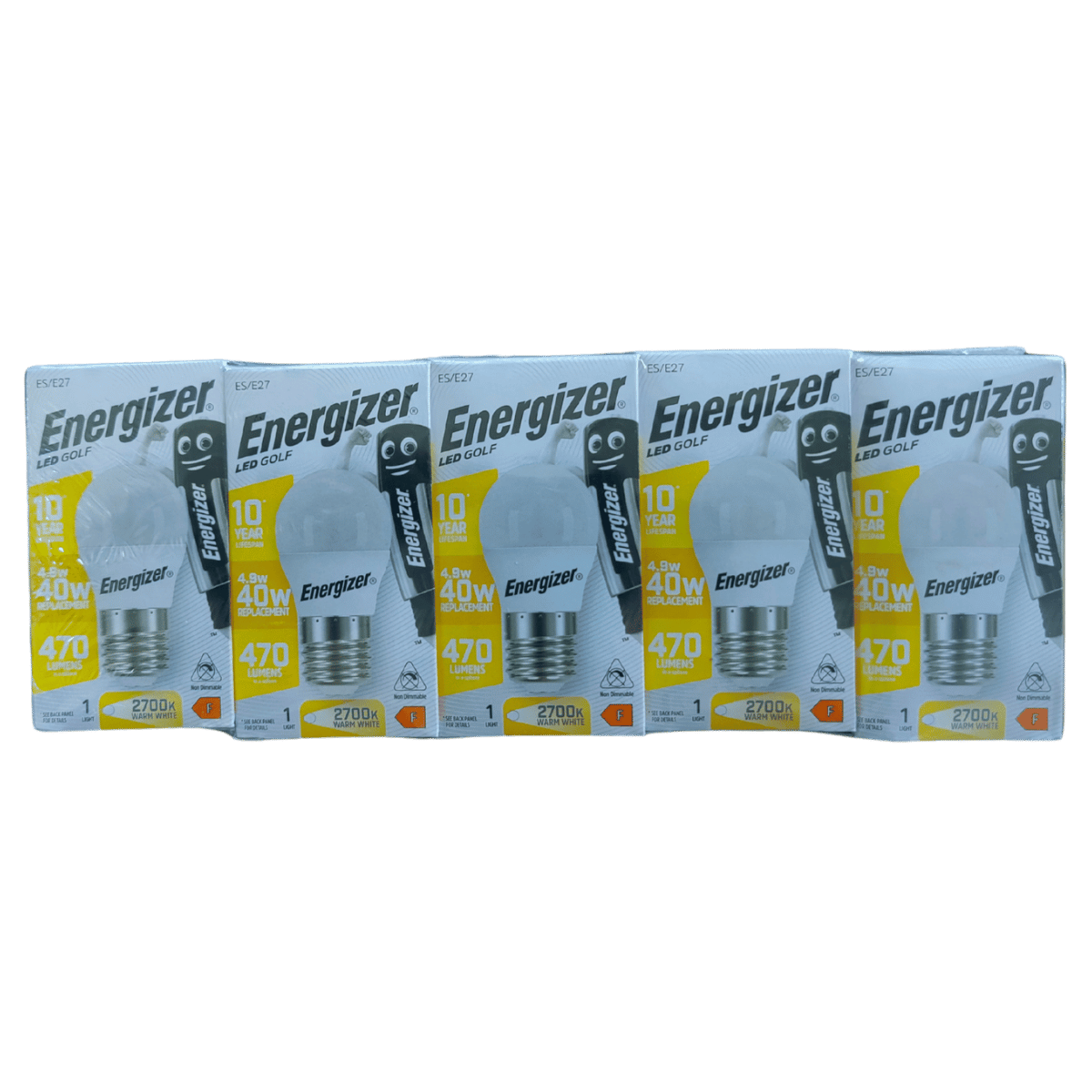 Energizer LED lamp met E27 fitting en een vermogen van 4,9 watt. Deze lamp vervangt een traditionele 40W gloeilamp en geeft warm wit licht van 2700K met een lichtopbrengst van 470 lumen. Een energiezuinige keuze met een levensduur tot 10 jaar. Verpakt per 5 stuks.
