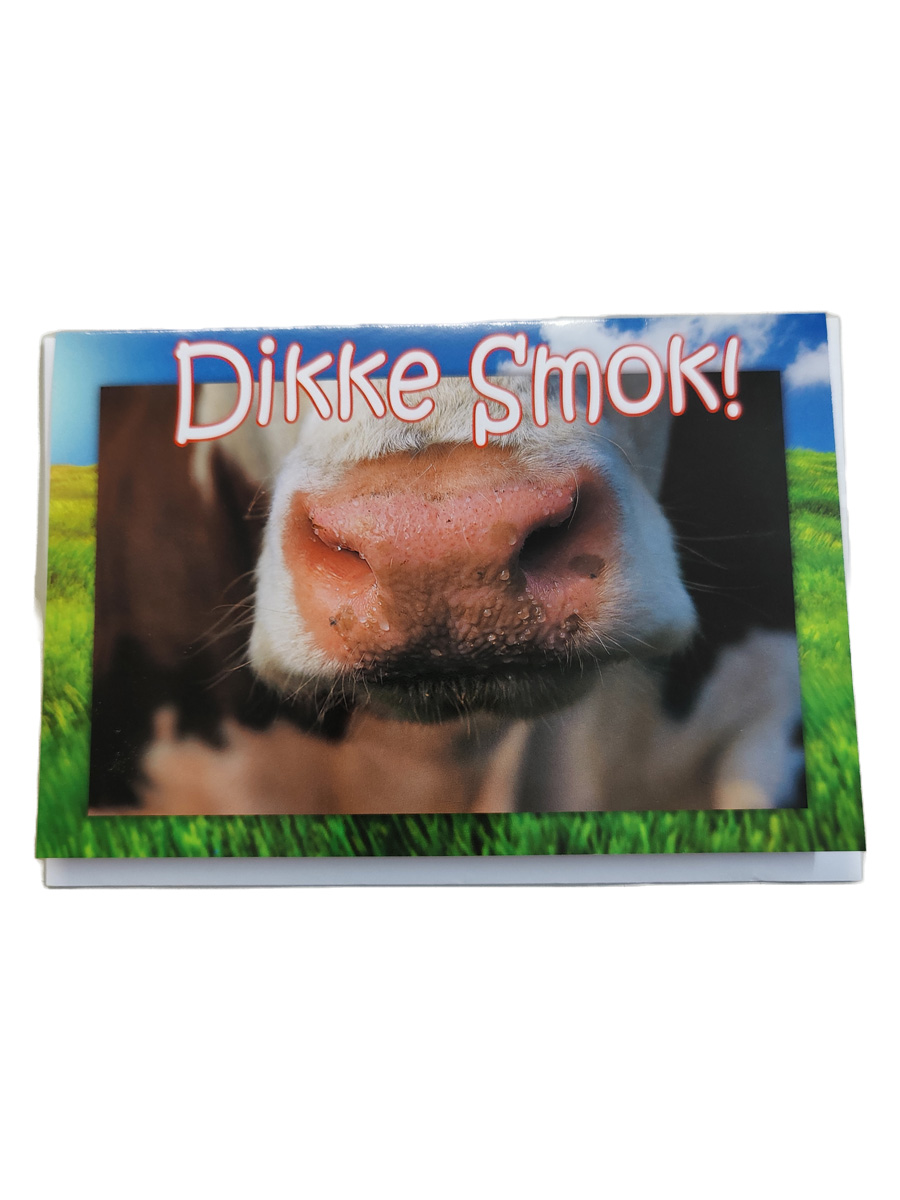wenskaart groningen – kaart met Gronings dialect en de tekst “Dikke Smok!”. Hartelijke zoen in het Gronings – voor wie het verdient. Gedrukt op stevig papier en geleverd met enveloppen. Verpakt per 6 stuks.
