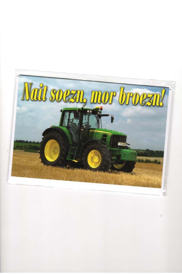 wenskaart groningen – kaart met Gronings dialect en de tekst “Nait soezn, mor broezn!”. Stoere trekker met Groningse aanpakkers-tekst. Gedrukt op stevig papier en geleverd met enveloppen. Verpakt per 6 stuks.